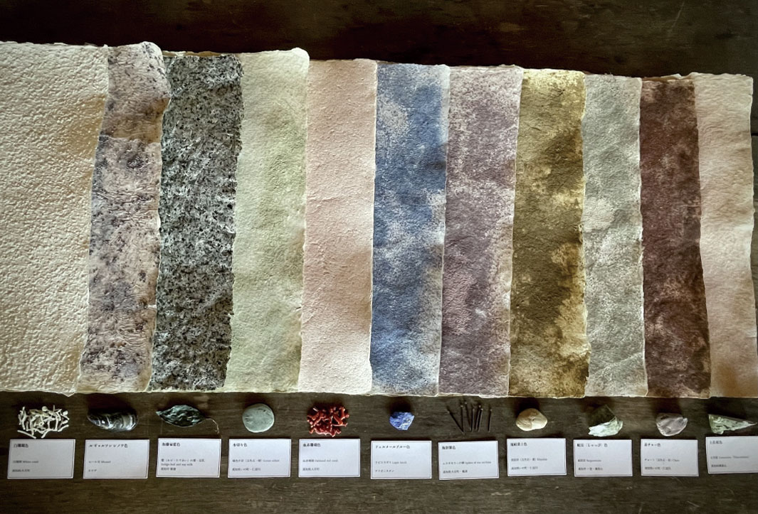 日本画家である越智明美氏が、 鉱物や岩石、 海洋生物などの高知の自然素材を中心