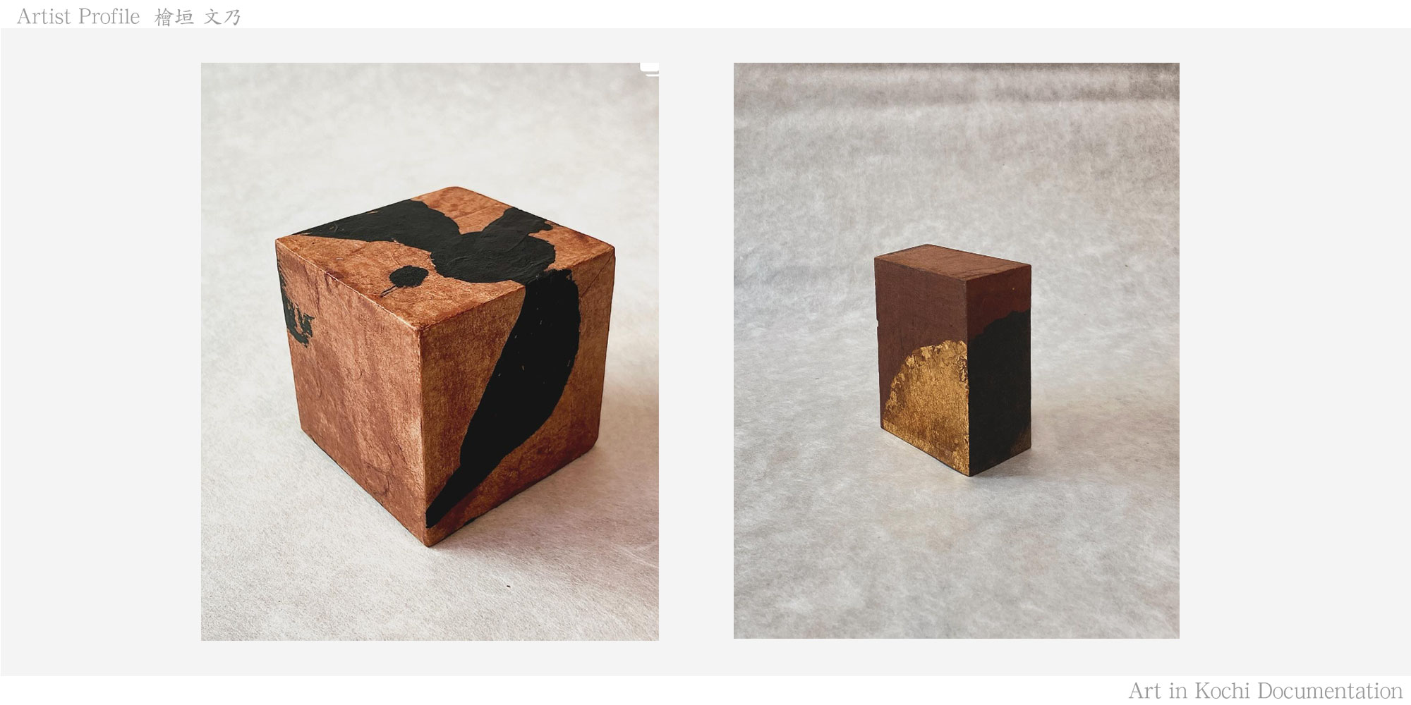 現在は生活の 中ででた木材や籠製品など を用い、土佐和紙と柿渋を 主な素材とし、制作をする。